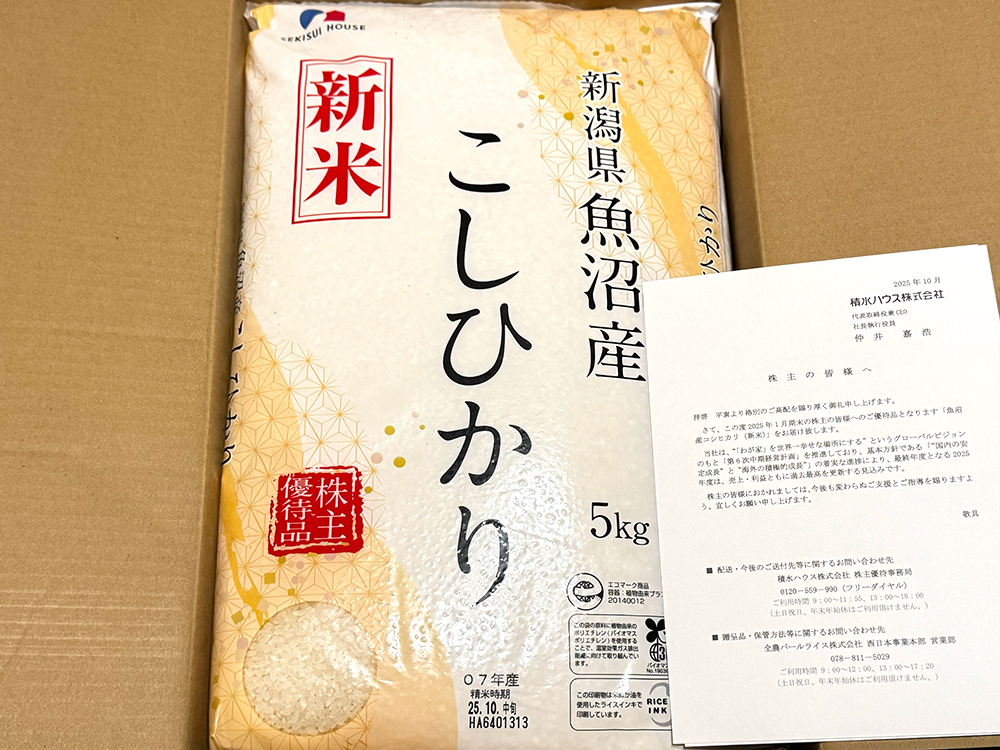 ③積水ハウス:新米こしひかり5Kg(10/25着)