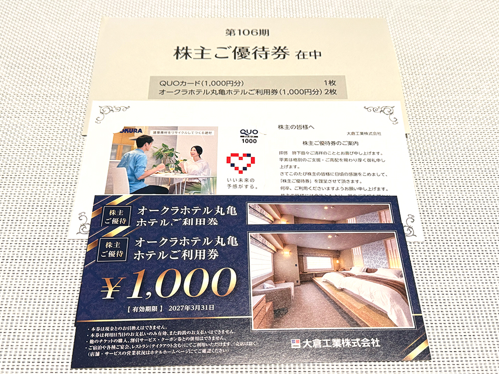 ⑪大倉工業:QUOカード1,000円分、食事券2,000円分(3/27着)
