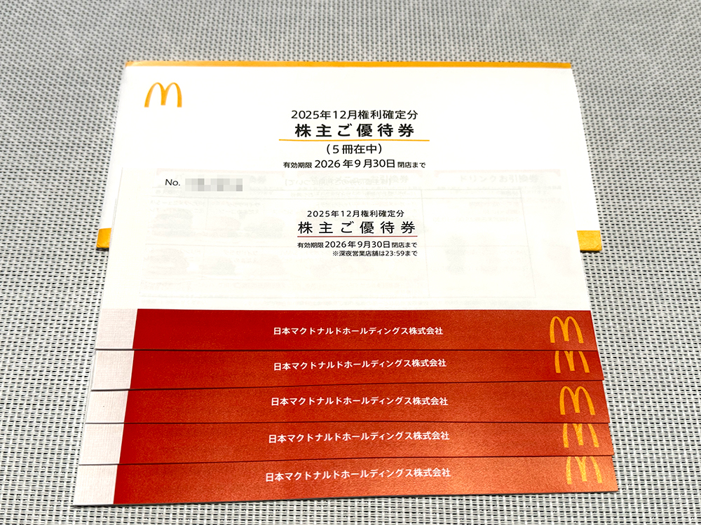 ⑫マクドナルド:6枚つづり優待券✕5冊(3/27着)