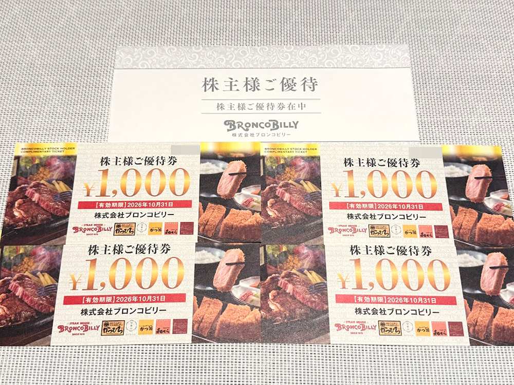 ⑤ブロンコビリー:優待券4,000円分(3/7着)