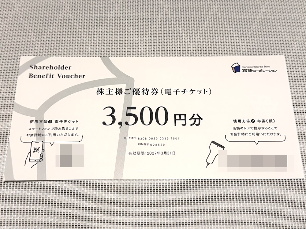 ⑥物語コーポレーション:優待券3,500円分(3/10着)