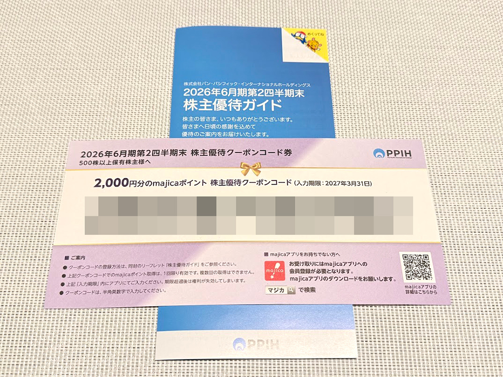 ⑩パンパシフィック:majikaチャージ2,000円分(3/23着)